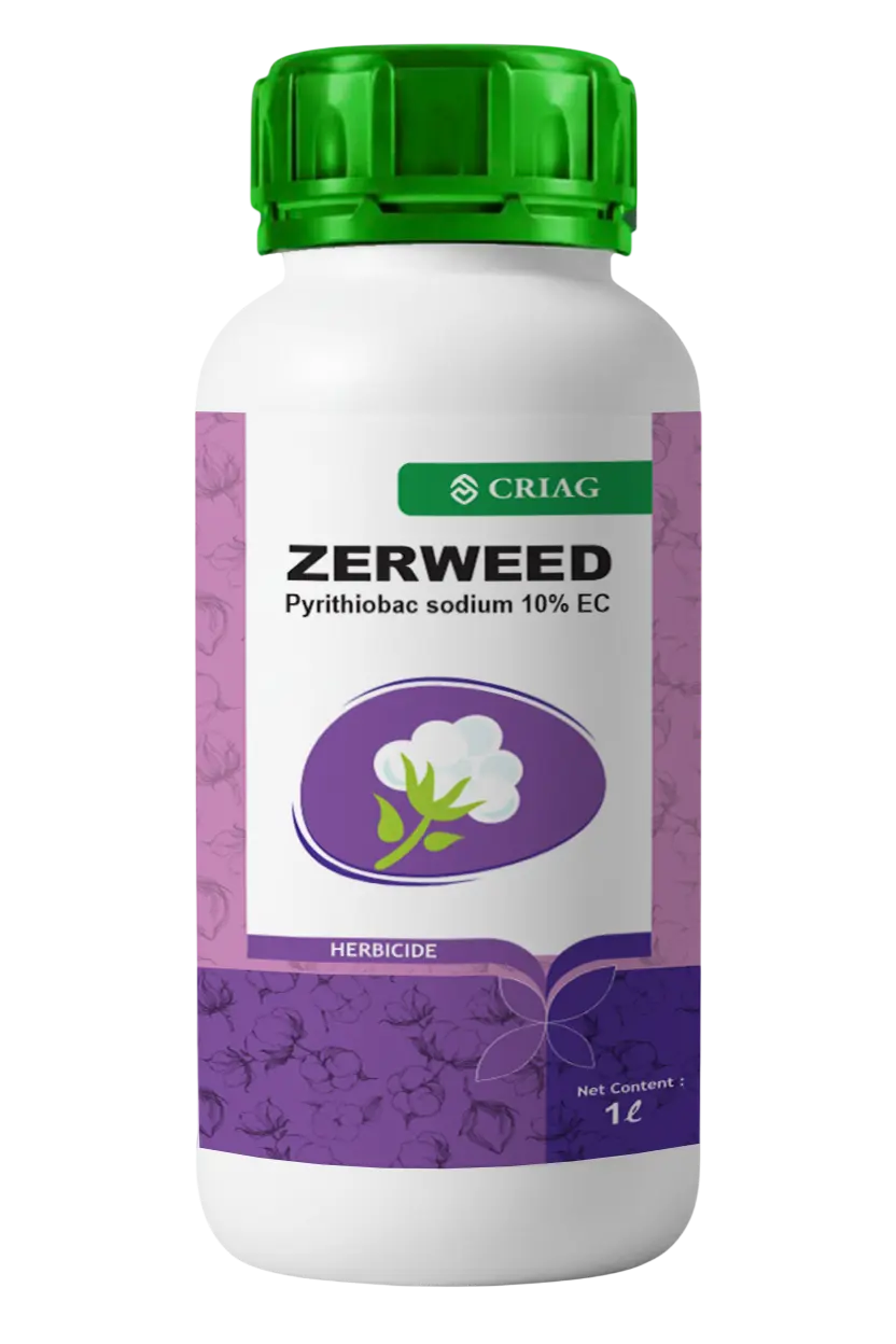 Pyrithiobac Sodium 10% EC inhibits Acetolactate Synthase (ALS), stopping the production of essential proteins in weeds, which leads to their death.